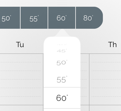 Choose the appropriate lesson duration for each student in the Lesson Duration Bar. In case your desired lesson duration is not visible, you can change it by tab and hold as shown below.