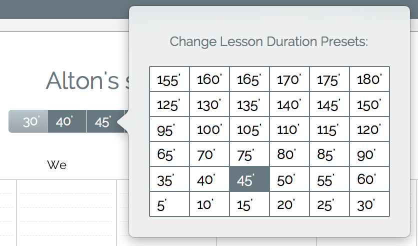 Choose the appropriate lesson duration for each student in the Lesson Duration Bar. In case your desired lesson duration is not visible, you can change it as shown below.